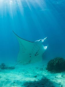We were anchored in Mo’orea waiting for a weather window to get us back to the Tuamotus and shark diving, when in from the coconut telegraph was word of manta rays in Tikehau. Let’s go!