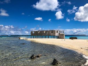 As I may have mentioned before and probably will again, entering or exiting a pass can be hairy. But with no wind and slack tide here’s what it looks like (outside of pass looking into the motu).